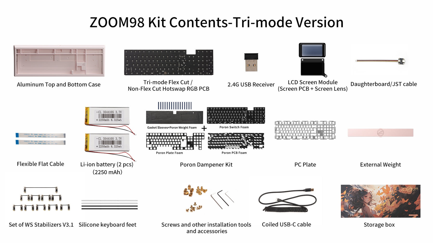 - 每個套件都有一個默認模組(三模式:LCD 屏幕)。此外,如果需要購買其他配件進行深度定製,請向客服反饋意見。