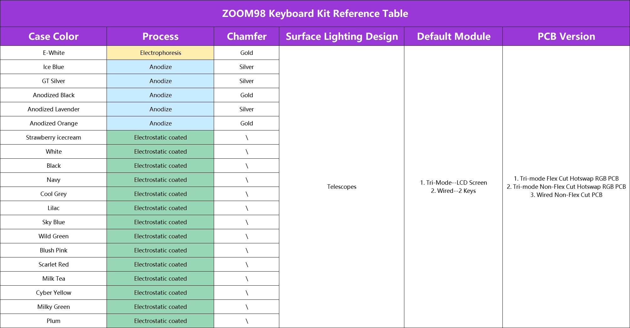 - 夜光旋鈕可安裝在其他 Zoom98 上,但不會顯示 RGB 效果。
