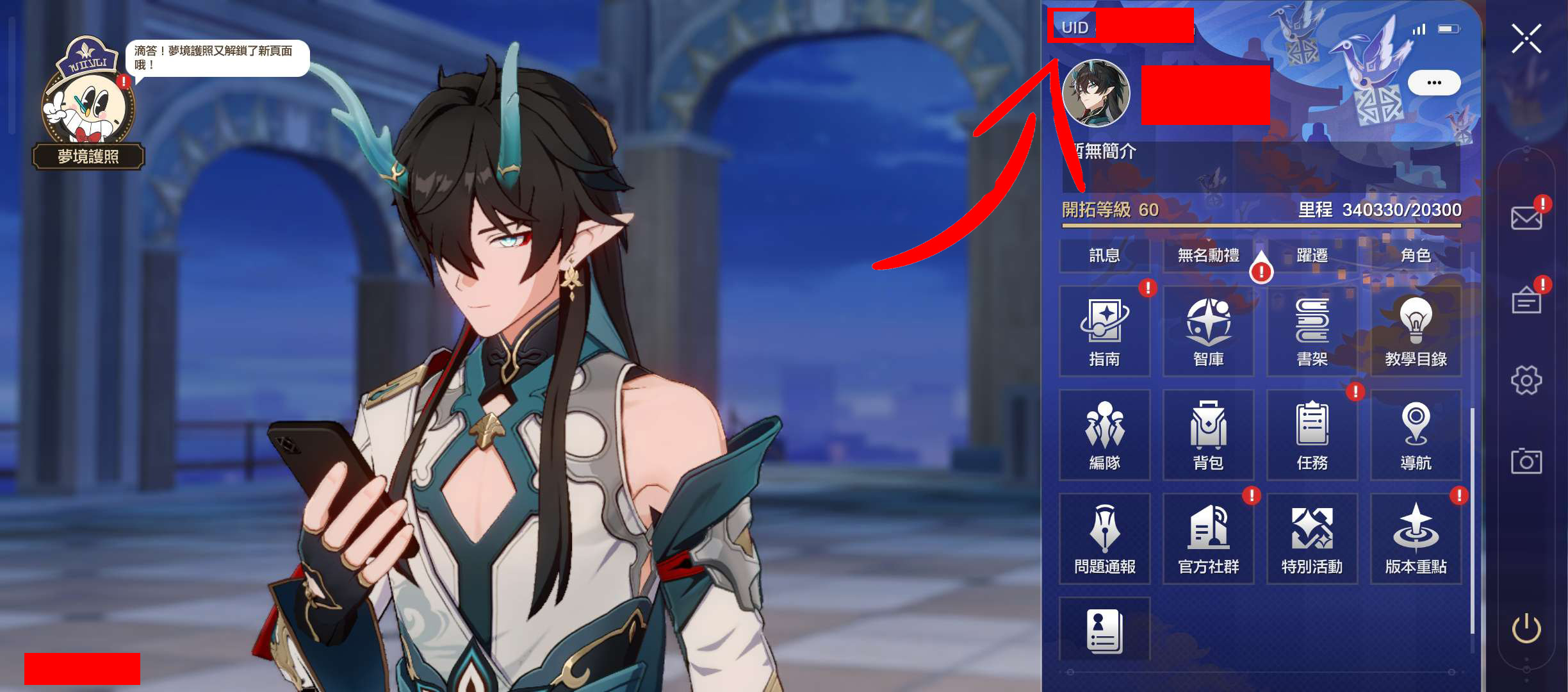 在遊戲選單中可以查看遊戲UID,請用「複製」功能以確保資料無誤