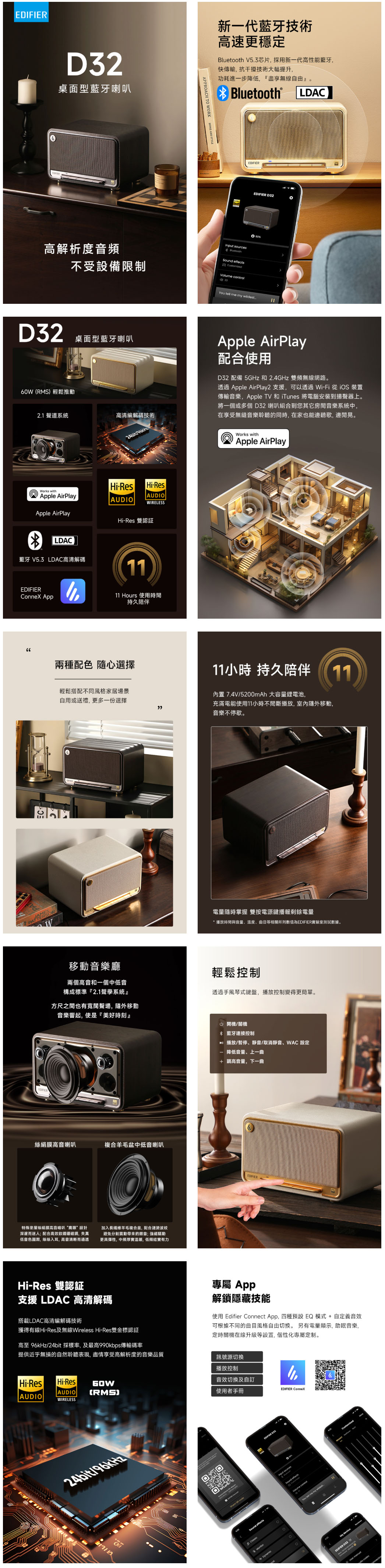 - 將一個或多個 D32 喇叭組合成一個能多房間的音樂系統