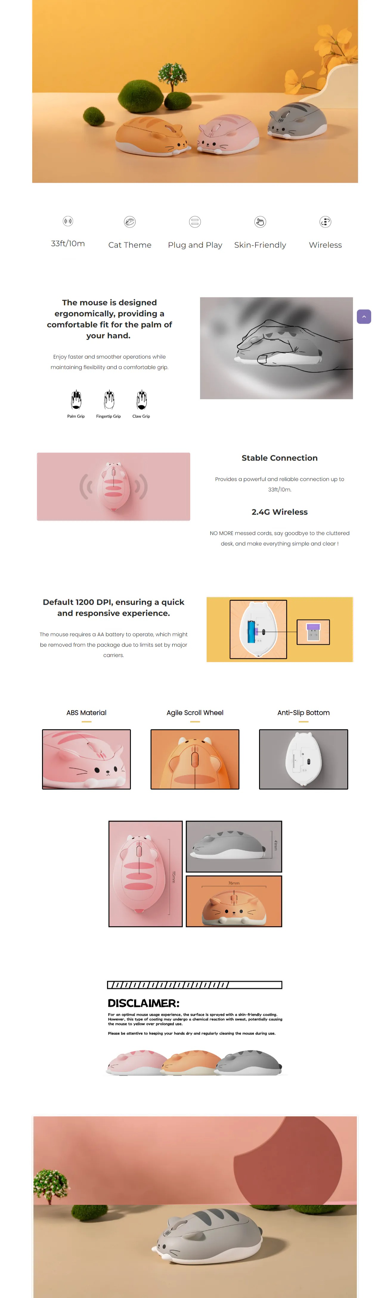 - 舒適符合人體工學 - 滑鼠符合人體工學設計,為您的手掌提供舒適的貼合度。 Akko Cat 主題滑鼠配有防滑底部和敏捷滾輪,提供更快、更流暢的操作。