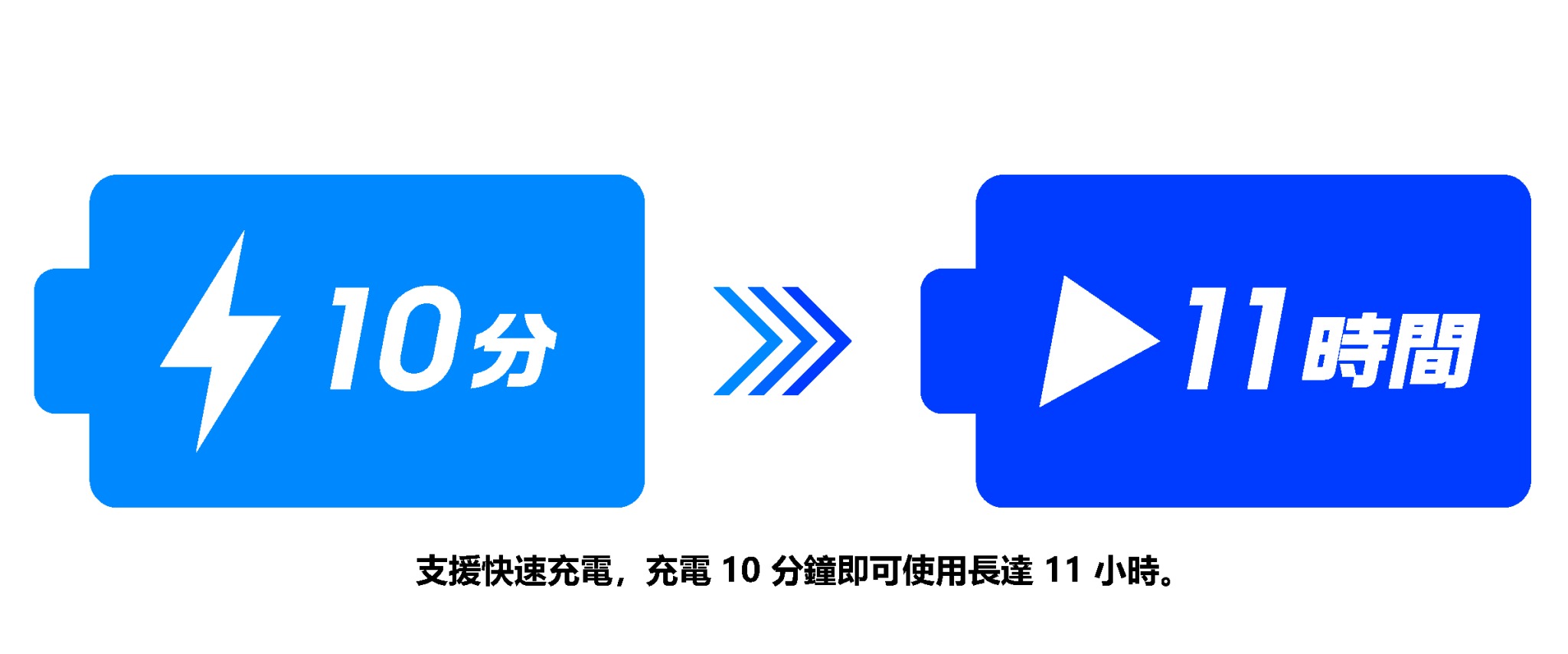 支援快速充電,充電約 10 分鐘即可播放長達 11 小時