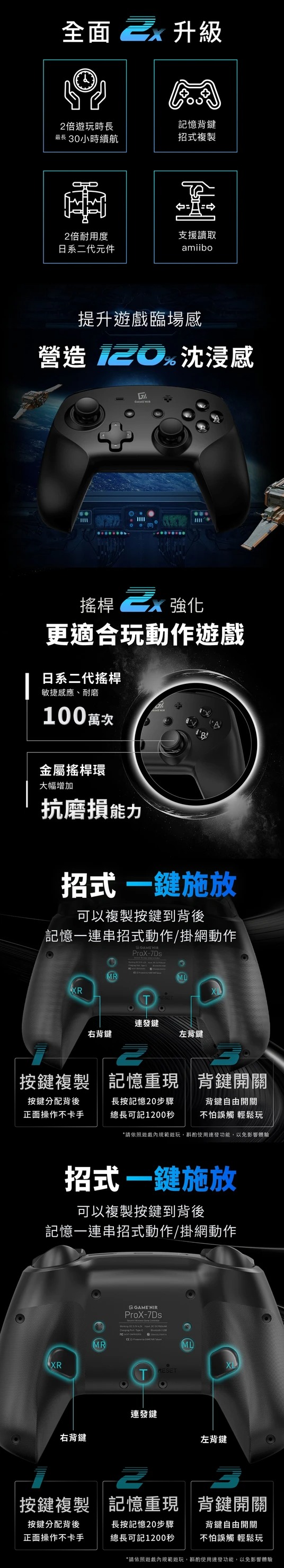 眾多Switch玩家愛用手把,港澳地區一年保養,市場唯一飄浮維修服務。除了Switch Pro之外,推薦大家還可以多備這支 GAME'NIR ProX-LEGEND7!