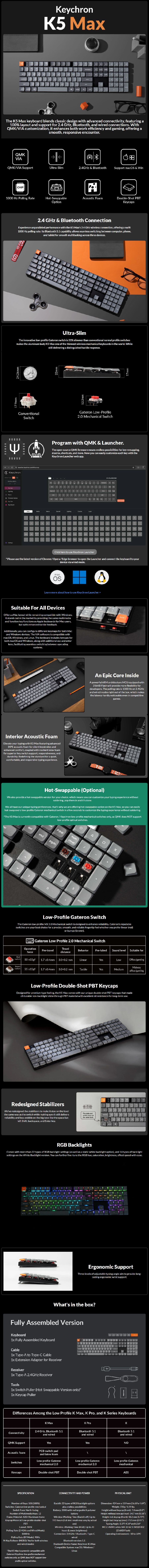 Keychron K5 Max (K5M-H1) RGB Swappable 極薄無線機械鍵盤