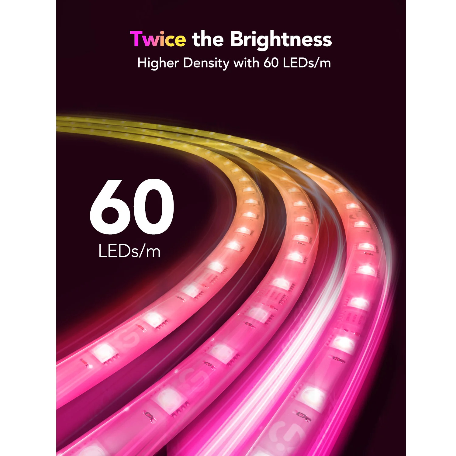 從顏色和流明來看,我們的LED燈條擁有市場上最多的燈珠。 每米有 60 個 LED,可以在燈帶上更清晰地呈現各種顏色和效果。