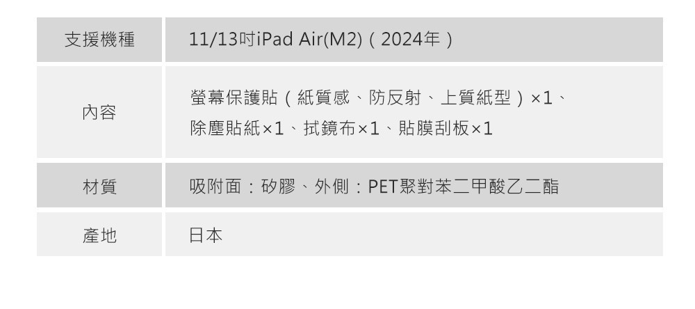 專為 iPad Air 11/13吋 2024年機種設計,模擬紙張質感,具防反光功能,實現了類似在上質紙用鉛筆描繪的質感。
