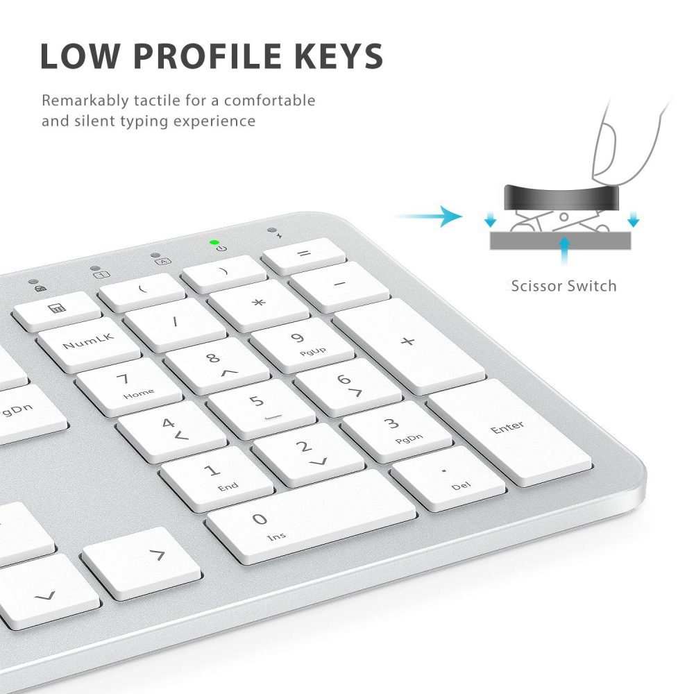 為了使您具有最佳的響應速度,此無線鍵盤由剪刀式開關按鍵製成,可實現穩定性,精度和效率的最佳組合。 每天保持沉默和快樂!