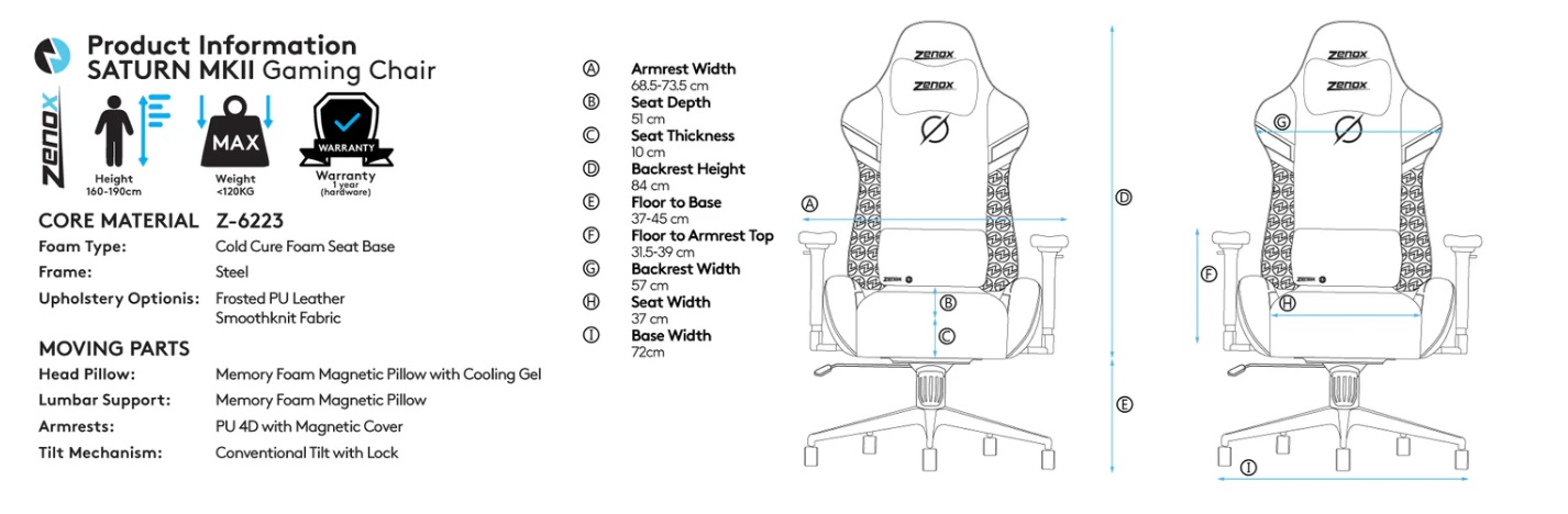 土星電競椅配有强化尼龍腳架,能夠承托高達120kg體重,配合雙輪椅轆適合於任何硬度地面行走。