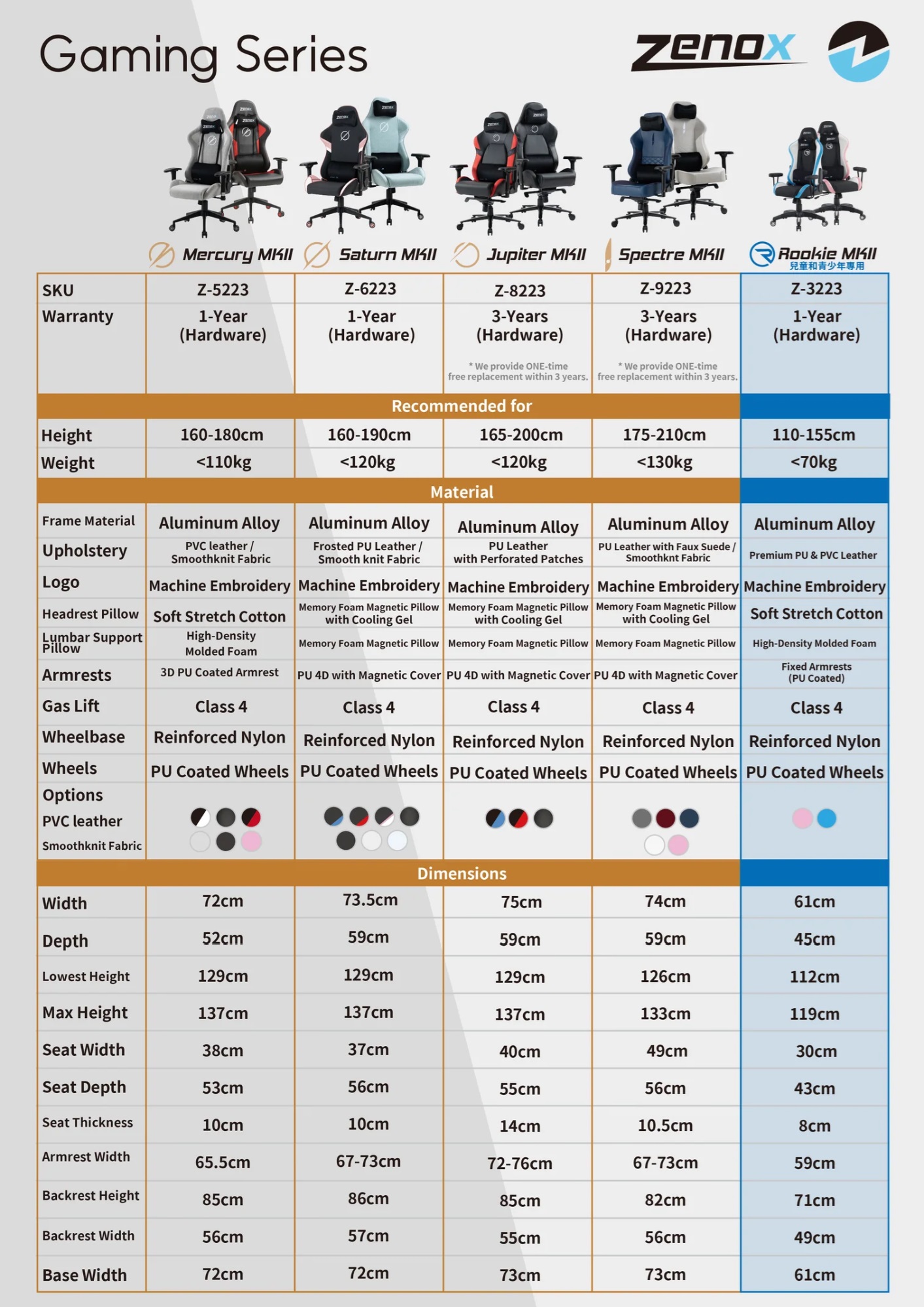 如需更換皮革/布面料或保養期外,請聯繫 Zenox 獲取報價更換或維修。