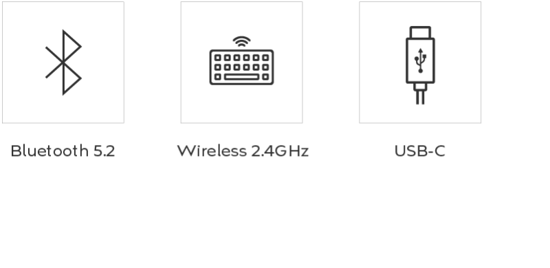 - 隨心切換藍牙 5.2、無線 2.4GHz 和 USB-C 連接方式,輕鬆適應各種使用環境。