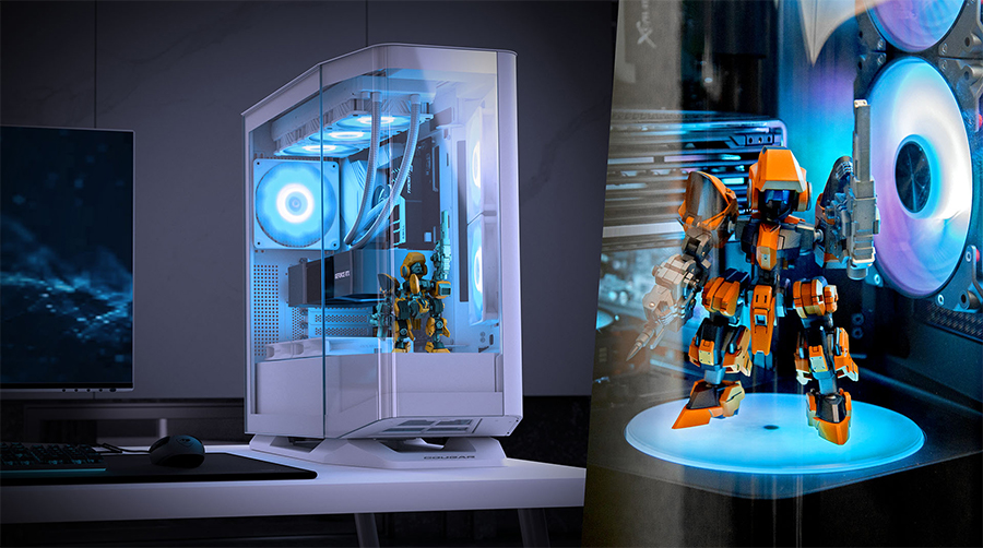 - An optional mounting platform – designed to showcase your prized collectibles within the panoramic interior – offers a dedicated space for hobby figurines, turning your PC into a personalized gallery.
