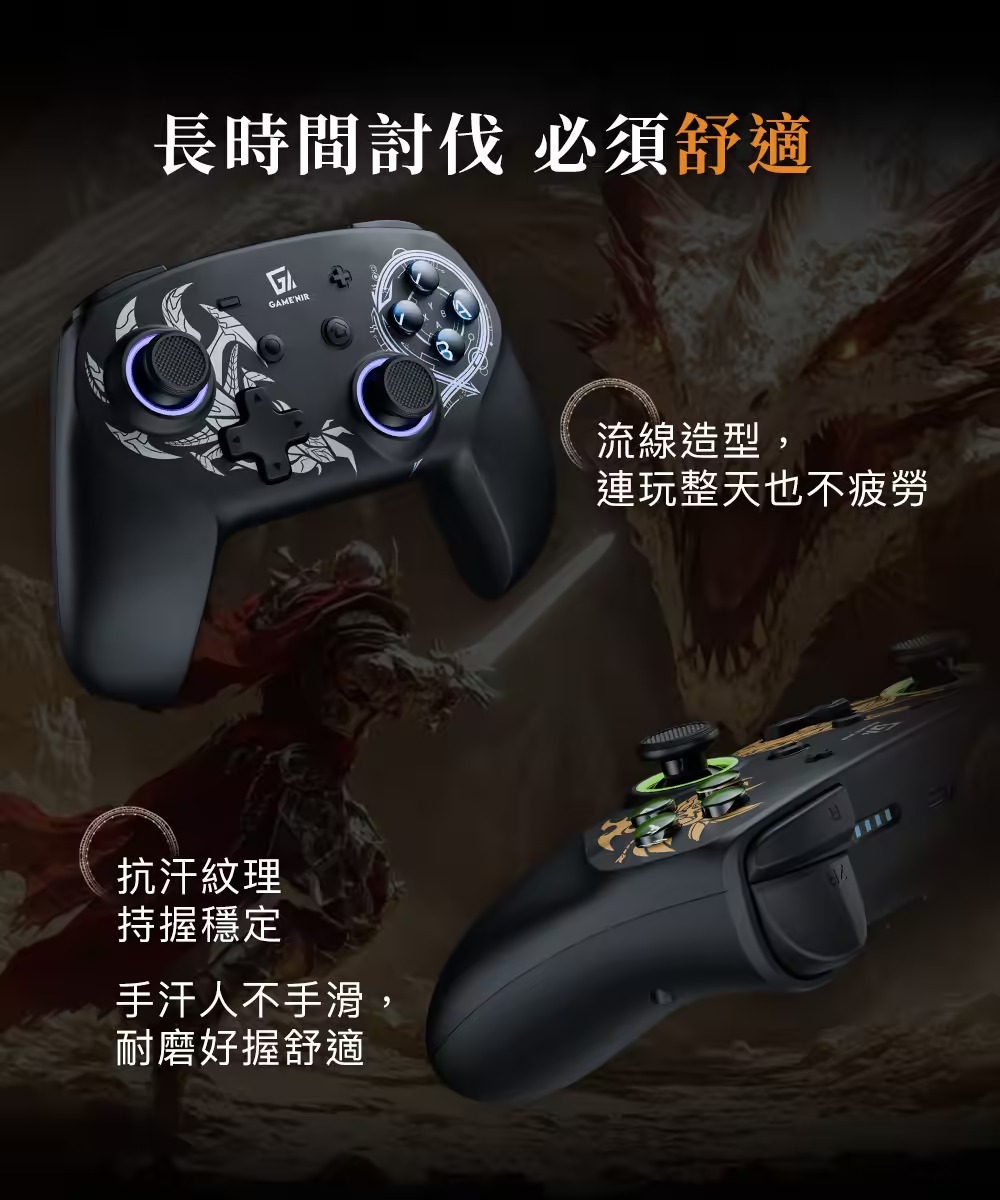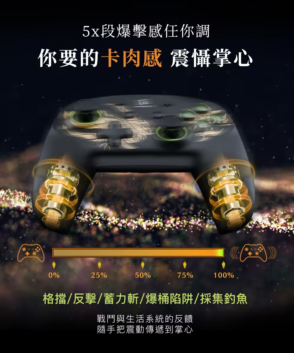 • 第七代GAME'NIR遊戲手把,超越Pro手把多段震度,比 joycon 更耐玩!