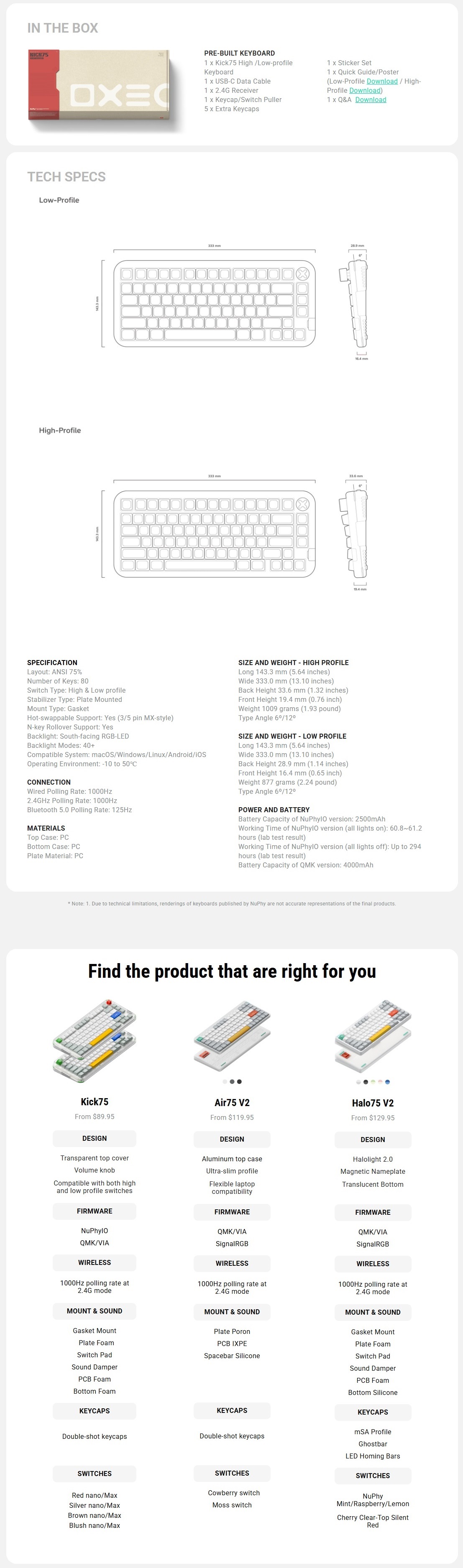 We've achieved a major breakthrough in wireless performance with the Kick75. It now supports a 1000Hz polling rate over a 2.4G connection, thanks to advanced chips and optimized radio wave propagation.