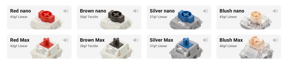 Inspired by the iconic rebound design of the classic NIKE Air Force, the Kick75 features the newly developed Nano Switch, co-created with Gateron. This groundbreaking switch brings an unprecedented typing experience to low-profile keyboards, offering exceptional smoothness and an addictive typing sound. The new Max Switch series for high-profile keyboards also sees significant improvements, delivering even better tactile feel and typing acoustics than ever before.