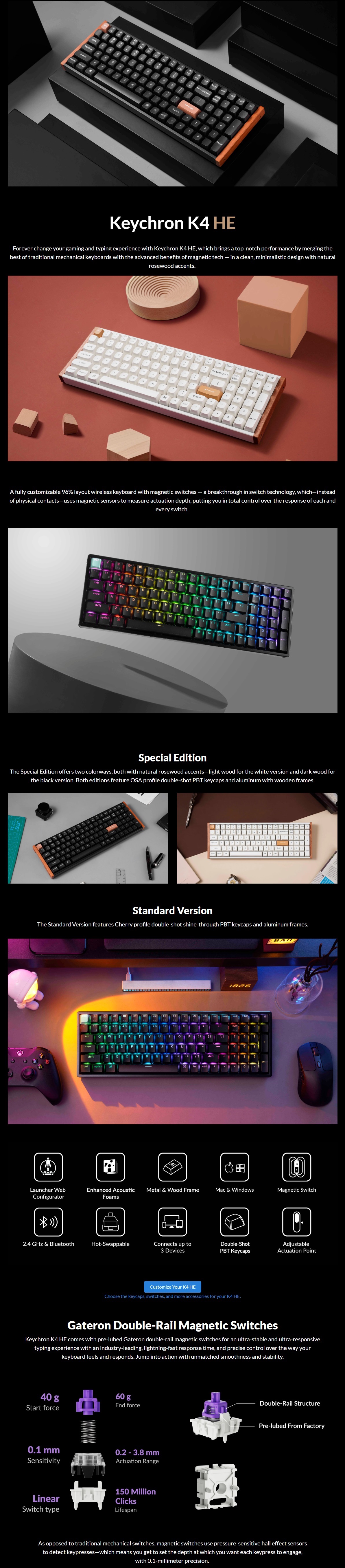 With each keypress, the K4 HE detects how far you press, translating it into different speeds and intensities. Enjoy nuanced control and heightened responsiveness in racing games, sports simulations, and more.