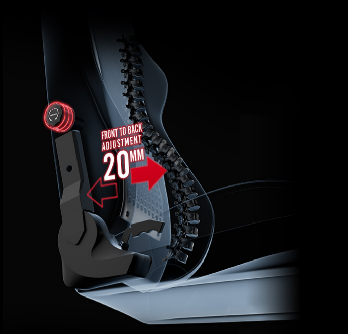 20毫米可調整的前後腰部支撐可以讓您選擇最舒適的角度。靠背略微凸起,以更好地貼合脊椎曲線,提供正確的坐姿體驗,減輕疲勞。