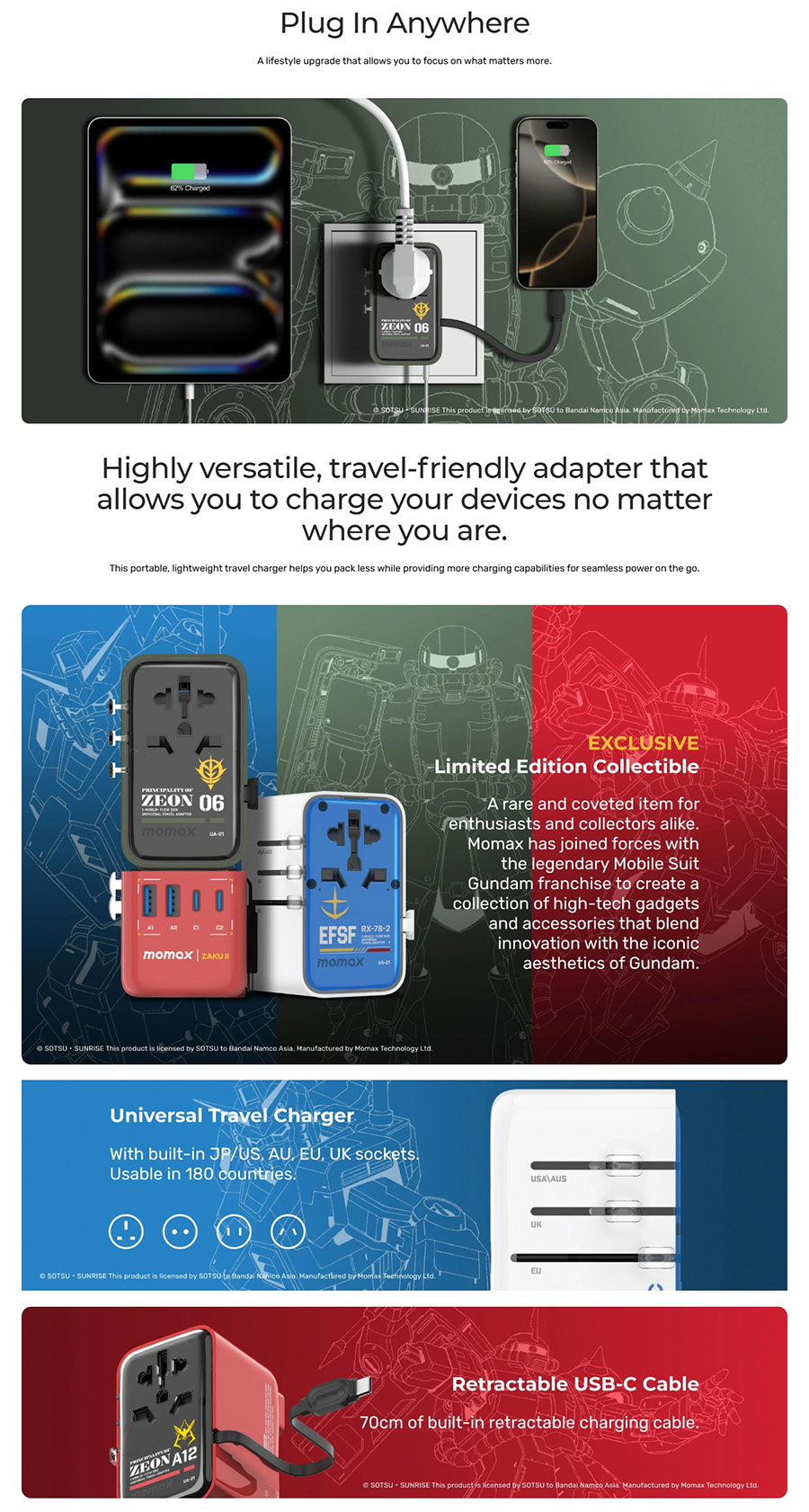 Built-in Japan/US, Australia, EU, UK outlets (available in over 180 countries/regions) Region-specific instructions: