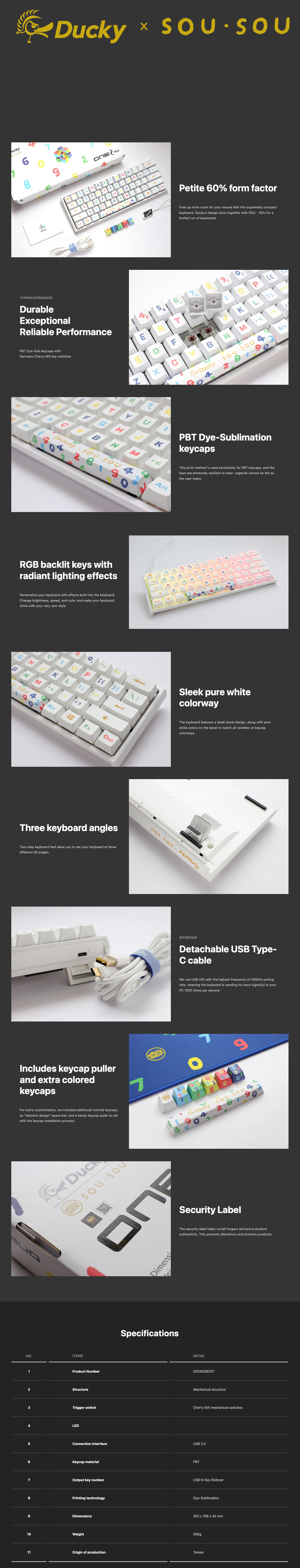 Ducky x SOU.SOU聯名 One 2 61 Keys Mini RGB 機械式鍵盤