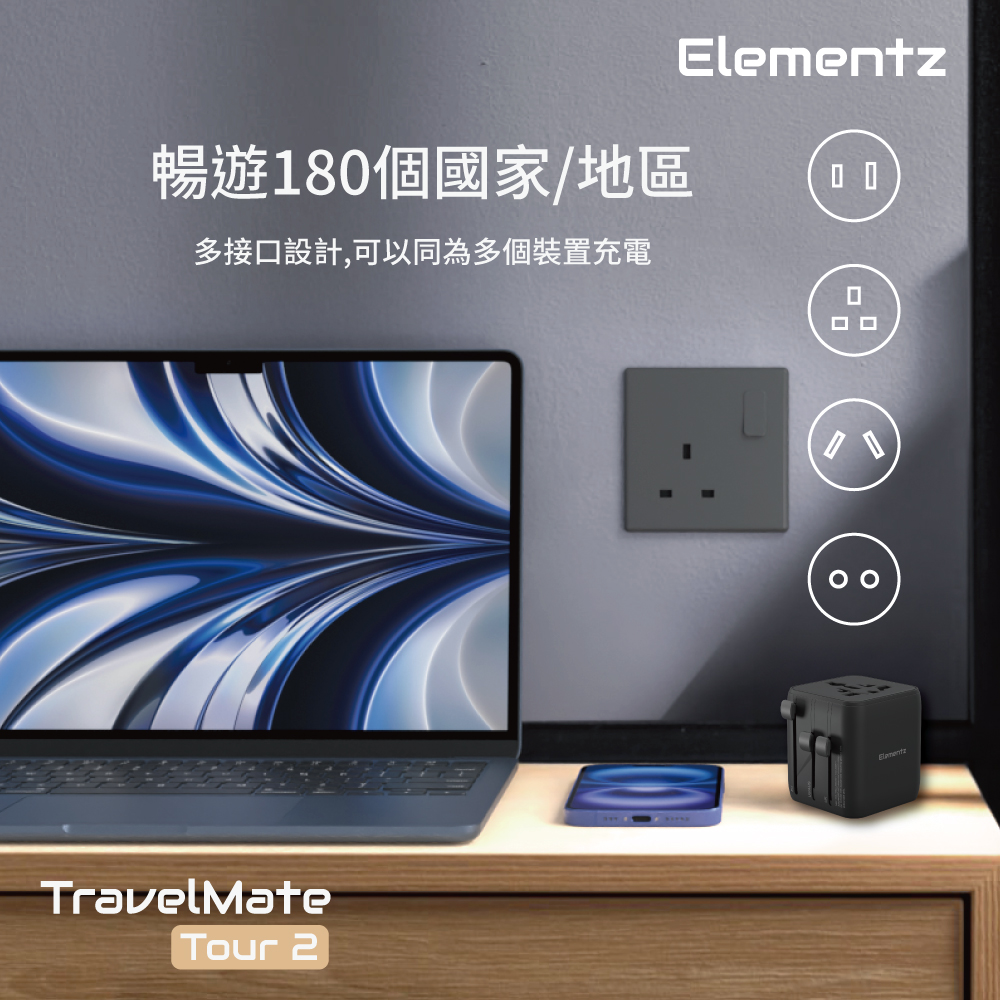 - 內置 JP/US、AU、EU、UK 插座, 可在180 (多個國家/地區使用)。