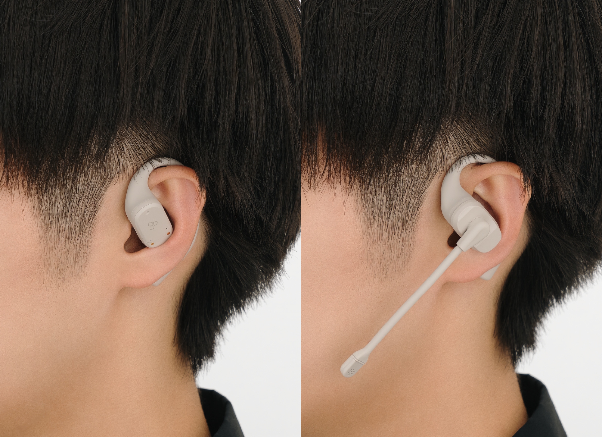 可單獨使用左耳或右耳。單耳使用時,左右聲道的音訊會集中於單側播放。由於採用開放式設計,不會造成耳朵悶塞感,即使單耳使用也比入耳式耳機更舒適。長時間會議或通話時,可輪流充電使用。即使只使用一側耳機,也可安裝 Boom 麥克風,像對講機般使用。