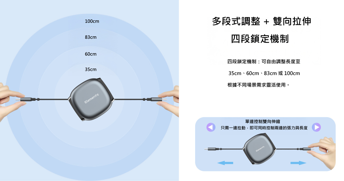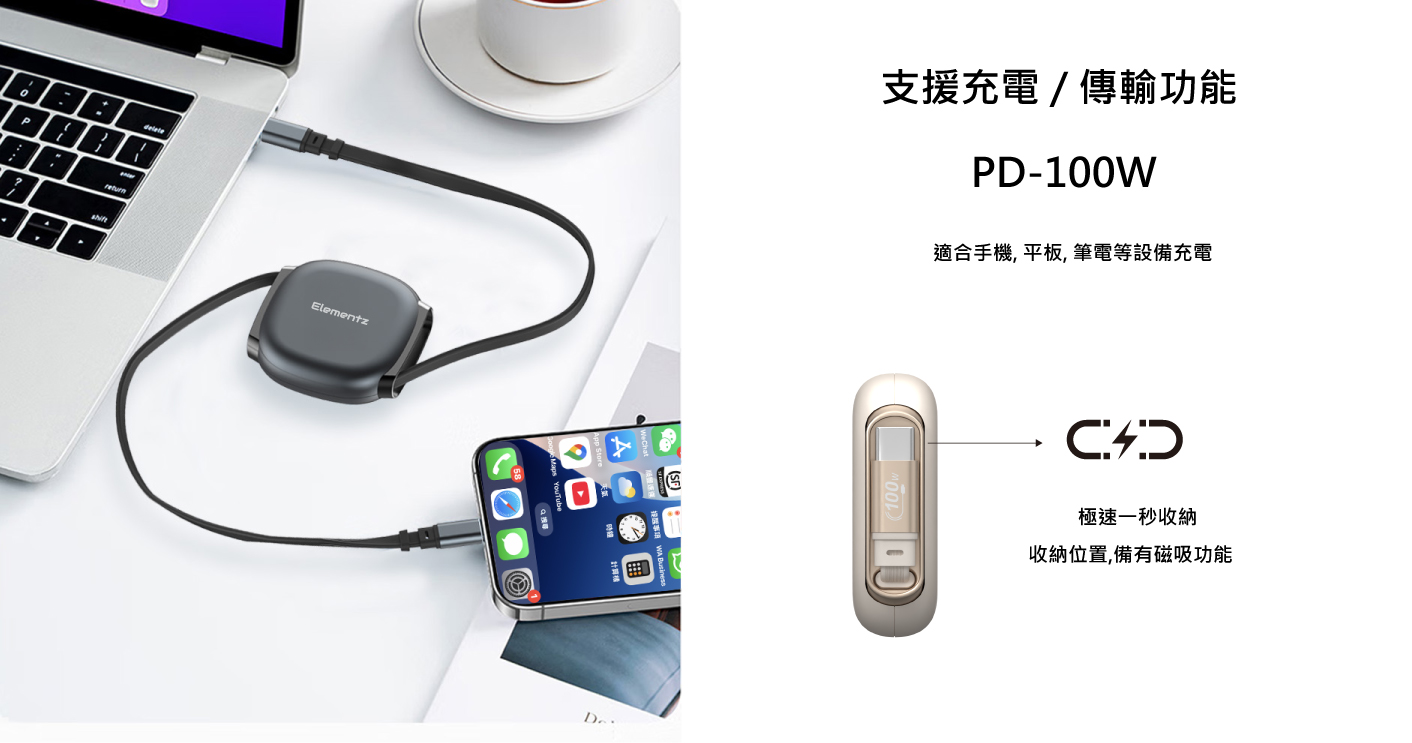 Elementz 100w USB C To C 快速充電伸縮線(NRC)