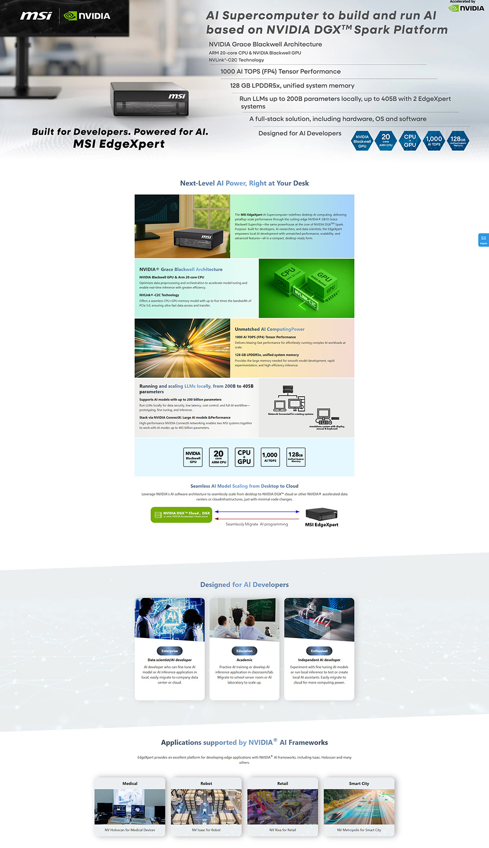 - 採用 NVIDIA Grace Blackwell 超晶片架構