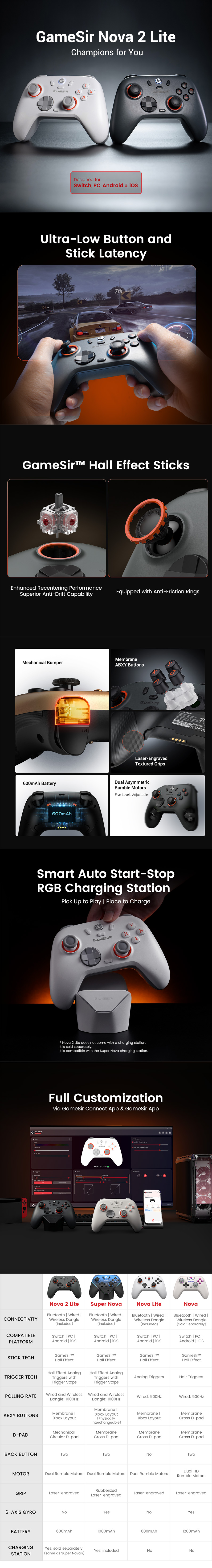 - GameSir™ 霍爾效應搖桿:具備防漂移及超耐用設計,優化回正性能,提高操控流暢度。