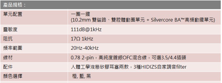 HIDIZS客製化Silvercore BA™高頻動鐵單元