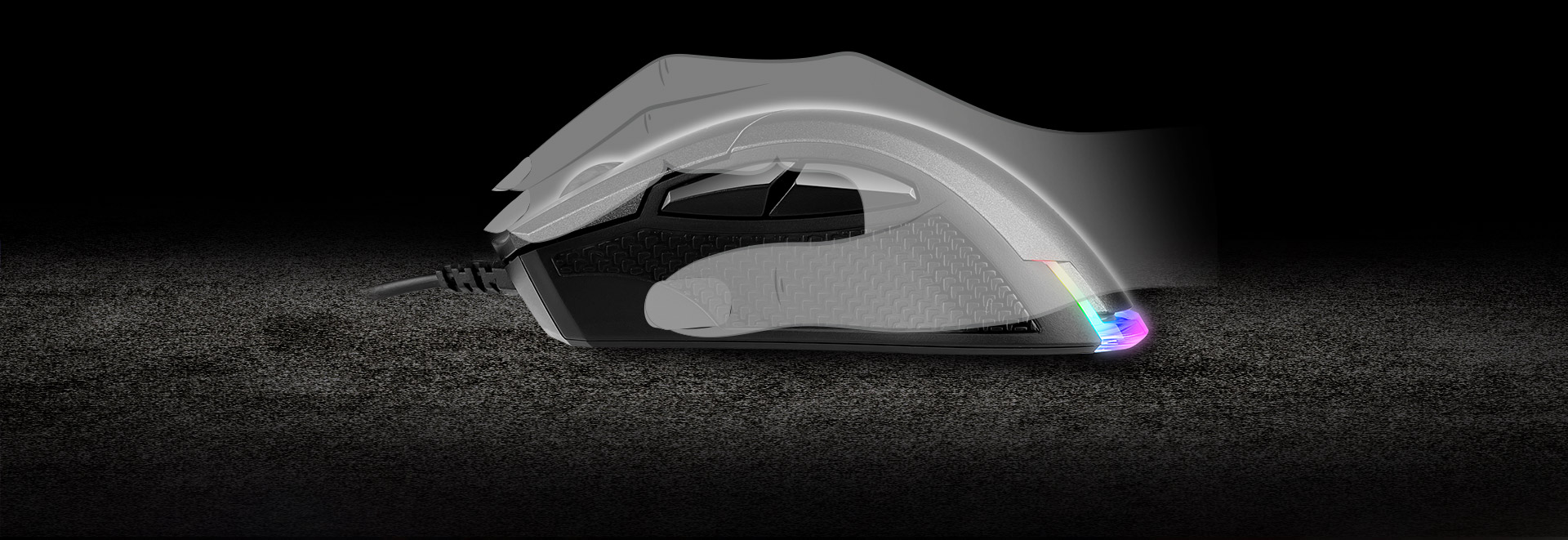 專為右手玩家所設計的MSI Clutch GM50經由無數次細微調校淬鍊出符合人體工學優異外型,使手部以最自然的輕鬆方式服貼於表面,為遊戲玩家提供最舒適的體驗。