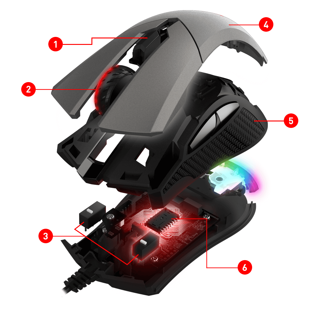 不含線僅87g的MSI Clutch GM50具備輕盈且均衡的重量分配,是MSI首款以符合射擊遊戲(FPS)玩家需求所設計的電競滑鼠,可實現瘋狂快速的移動。搭配高度耐用的歐姆龍微動開關,能承受超過2000萬次的點擊次數。