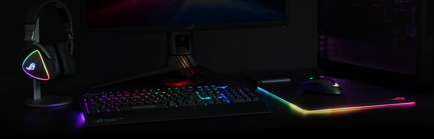 註:相容的 ROG 與 TUF 電競鍵盤、滑鼠及滑鼠墊的燈效同步可透過Armoury II 軟體啟用及控制,與其他配備的同步則可透過 ASUS Aura 啟用及控制。