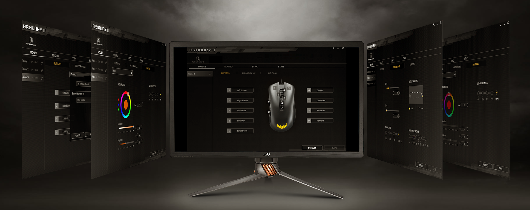 - Armoury II 程式提供多種控制功能,直覺易用的使用者介面可讓您輕鬆設定自己專屬的滑鼠。