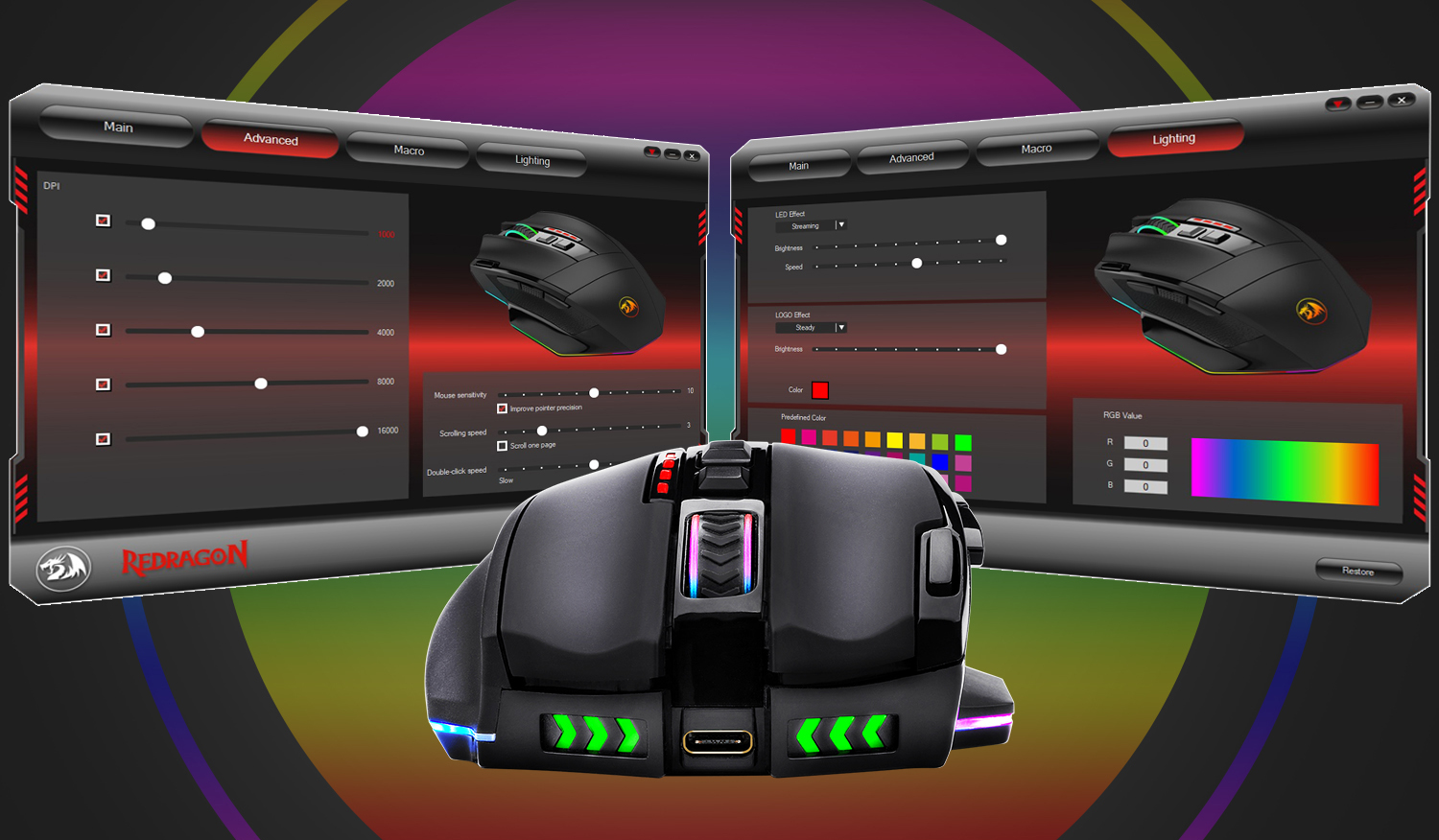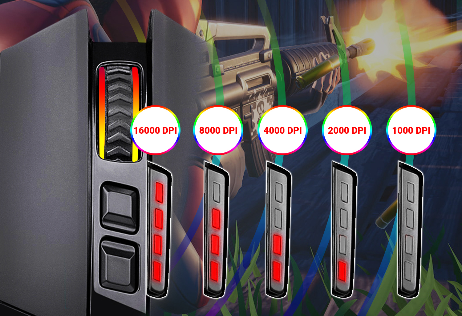 Adjustable DPI Sensitivity (1000-16000DPI) keeps the mouse sensitivity catered to your gaming preference. The indicator levels keep track of the current DPI setting.