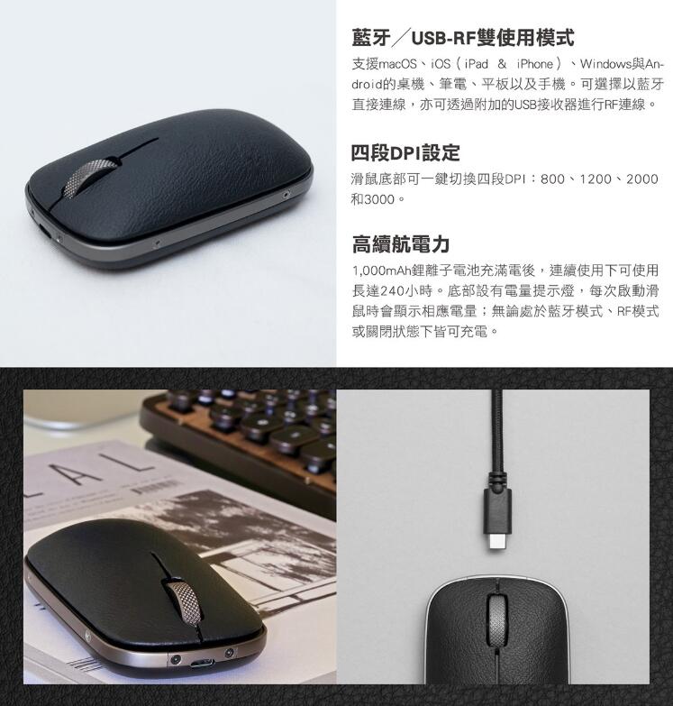 - 連接介面:Bluetooth 無線藍牙、無線USB-RF