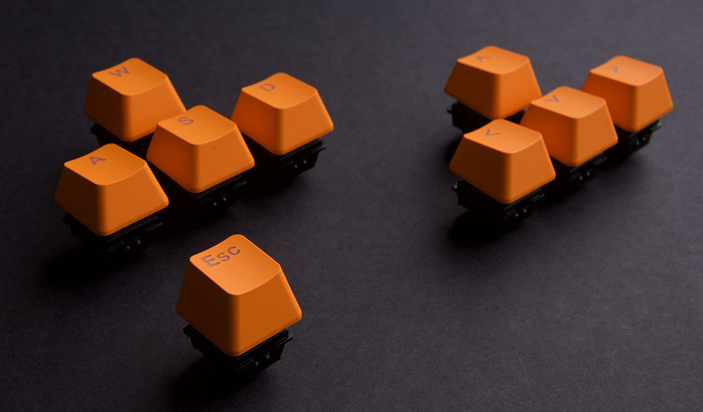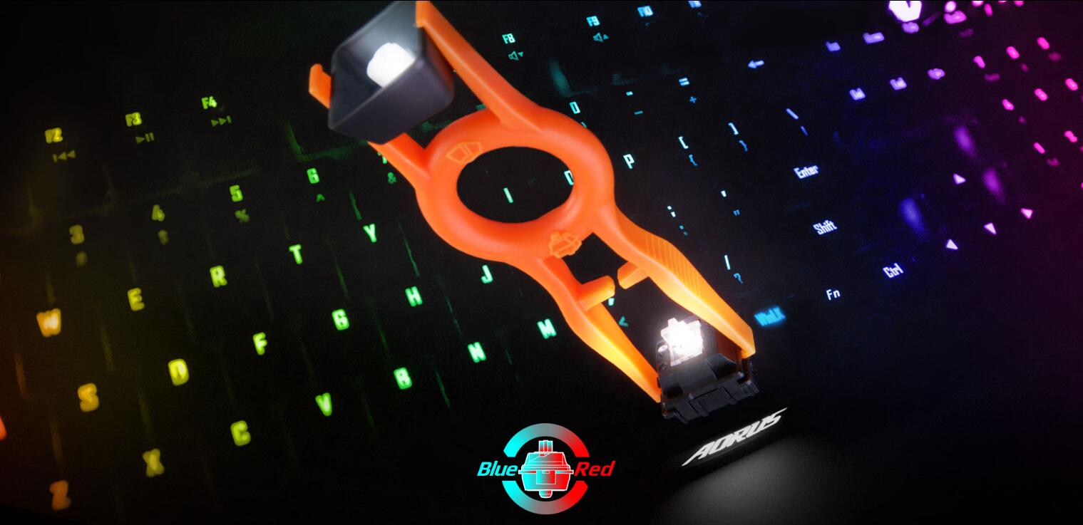 隨附鍵帽採用PBT材質,擁有與一般ABS材質相比更高的硬度和耐磨度,可大幅減少鍵帽打油的情況,是重度玩家的夢幻逸品。AORUS K9 Optical光軸電競鍵盤隨附九組鍵帽及軸體,包含遊戲中最常使用的W、A、S、D、ESC以及四個方向鍵;為使玩家嘗試更多不同的敲擊手感,若購買紅軸版本將附贈青軸軸體,反之亦然,帶給玩家最頂級的手感體驗。