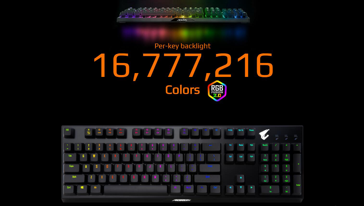 AORUS K9 Optical 採用簡約俐落的無上蓋懸浮設計,不僅方便清潔,更可使RGB光彩變化更加炫麗耀眼。