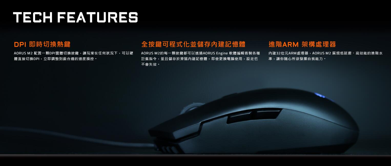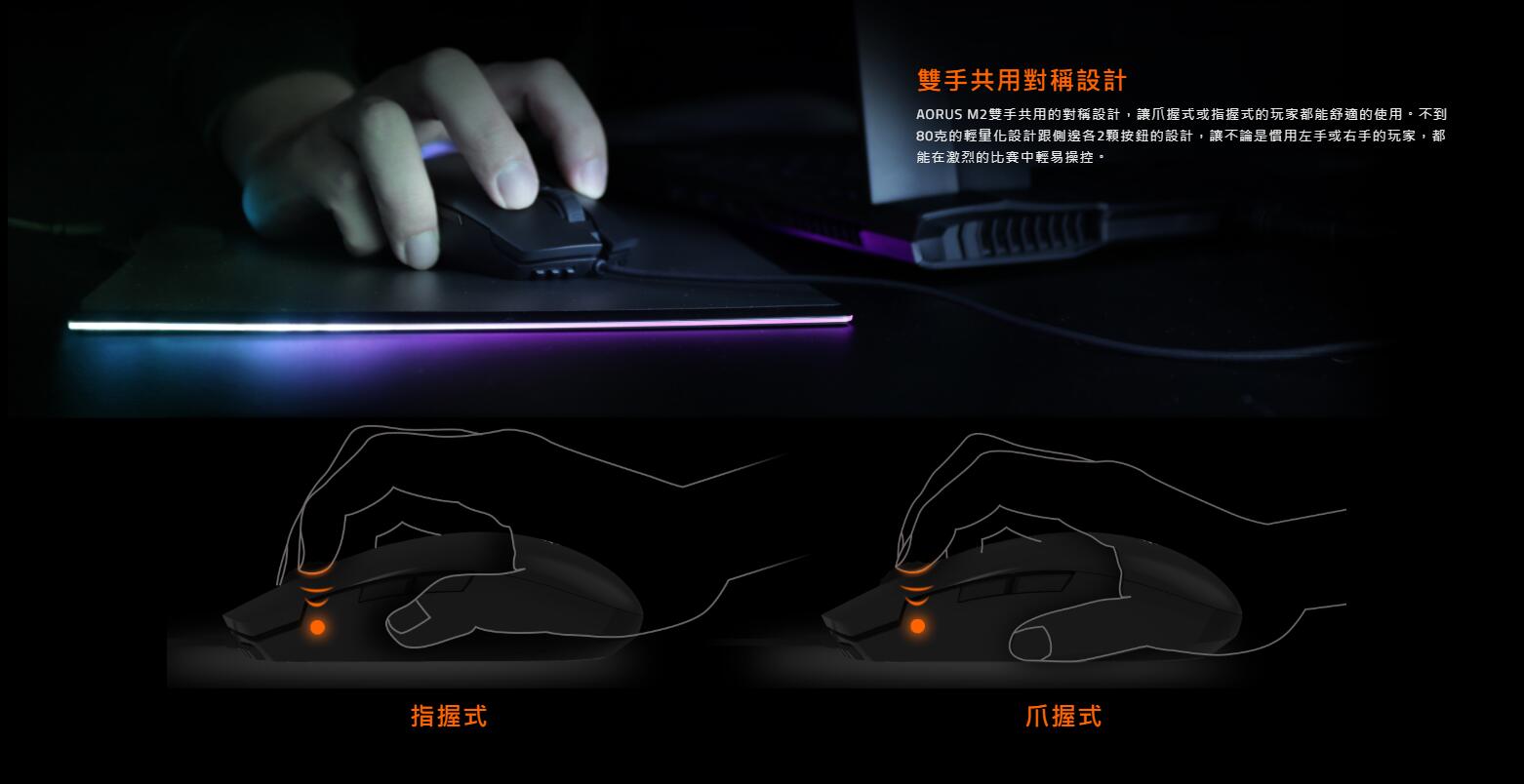 AORUS M2左右鍵採用耐用度高達5,000萬次按壓以上的日系OMRON微動開關,不僅點擊觸感舒適、回彈清脆,更能延長維持一致手感的年限。