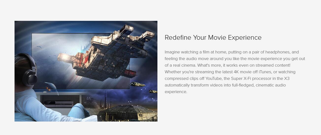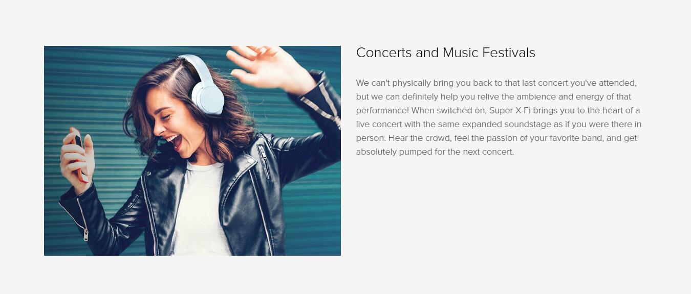 Critically-acclaimed by respected journalists all over the world and garnering 15 CES "Best-of" awards in 2019, the Super X-Fi technology captures the listening experience of a high-end multi-speaker system set up, and recreates the same expansive experience — with the same original depth, detail, realism, and immersiveness — in your headphones. Not simply a 3D surround technology, the power of Super X-Fi lies in its capability to recreate natural, realistic audio holography that matches your hearing profile, to deliver to you a full theatrical experience.