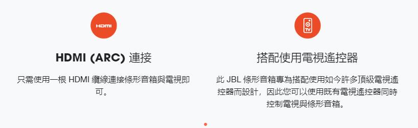音源輸入方面,JBL BAR STUDIO 設有 HDMI、光纖數碼及 3.5mm 模擬輸入;並對應 HDMI ARC,用戶只需連接一條 HDMI 線材,便能聆聽兼容 ARC 電視機的聲音。
