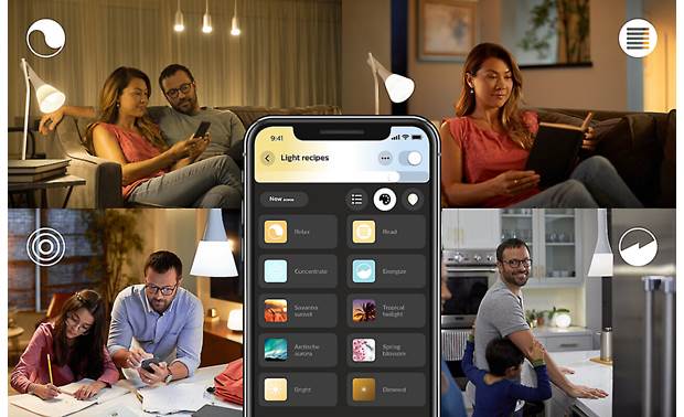 開始使用 Philips Hue Light Recipe 套件,助您放鬆、閱讀、專注或提振精神。可透過應用程式、語音或調光開關進行即時控制,或與 Hue Bridge 配對以充分發揮完整功能效用。