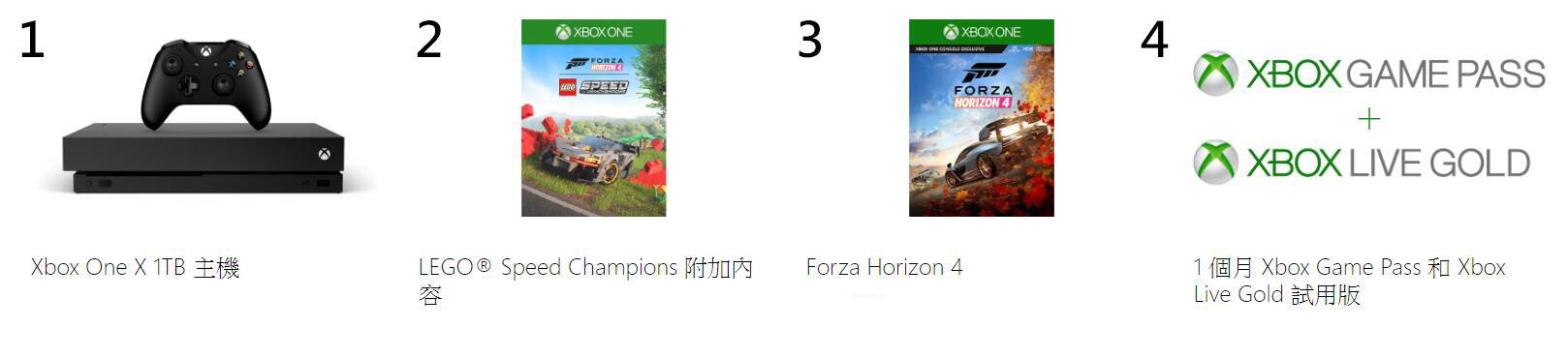 擁有 Xbox One X Forza Horizon 4 LEGO® Speed Champions 同捆裝,實現您的 Master Builder 夢想。體驗共享的開放式世界、探索令人驚喜的全新 LEGO 山谷,並在車庫裡擺滿超棒的車輛。此同捆裝包含 Xbox One X、Forza Horizon 4 的完整遊戲下載,以及 LEGO Speed Champions 附加內容等。**