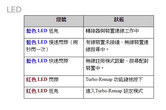 配對補充說明 按壓WingmanXE兩側的LED 按鍵 1秒鐘後會進入無線配對模式,並會對周遭的藍芽裝置進行配對,當發生以下任一狀況時會退出配對模式: