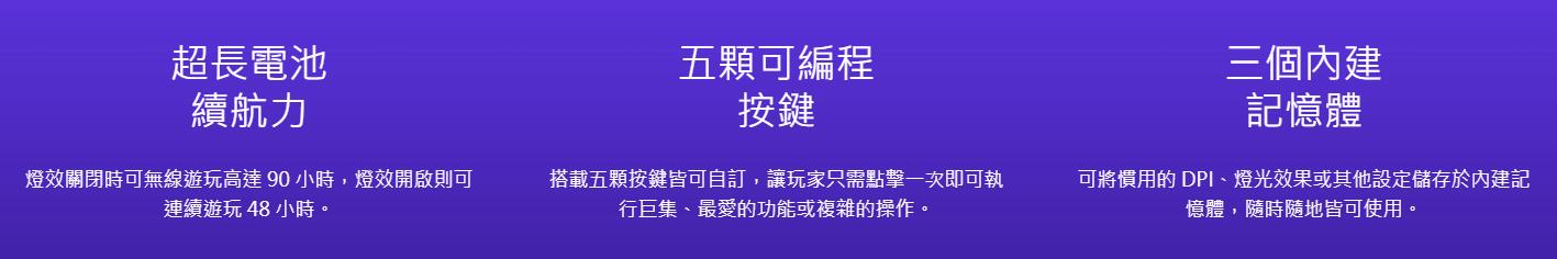 - 高達 89 小時的超長電池續航力,RGB 燈效開啟時可連續使用 48 小時