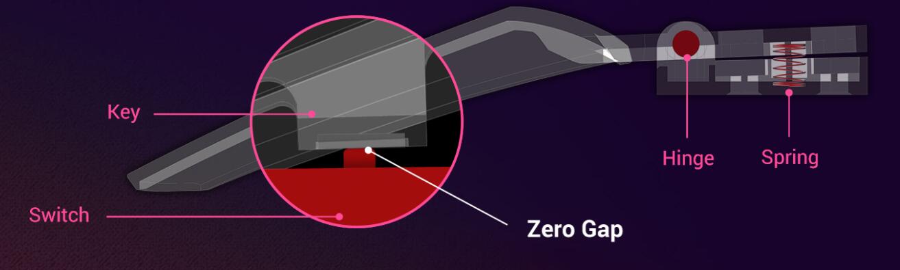 - 樞軸按鍵結構可提供快速反應及精確效能,並帶來清晰優異的鍵擊觸感