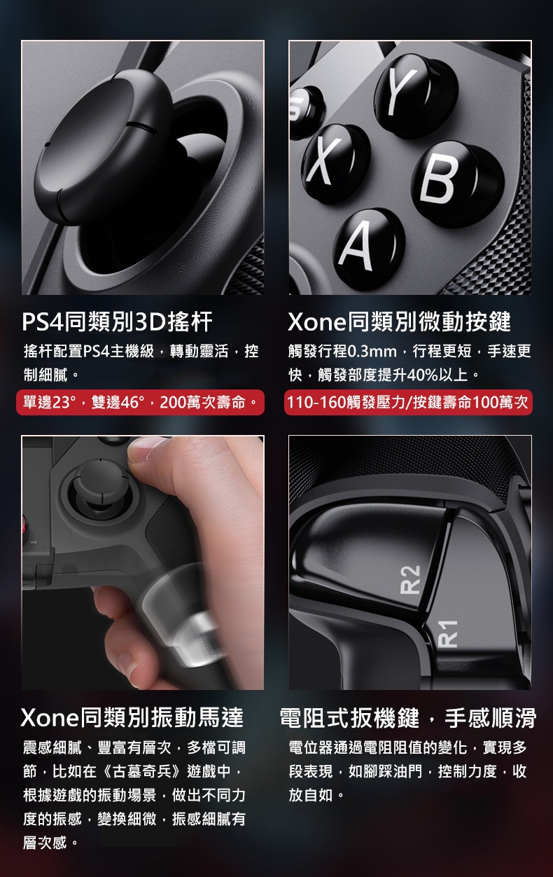 G4 Pro 手柄通過雙藍牙驅動,實現支持4大平台8種遊戲模式,突破傳統單芯片支持3-4種的局限模式,帶來X種玩法。