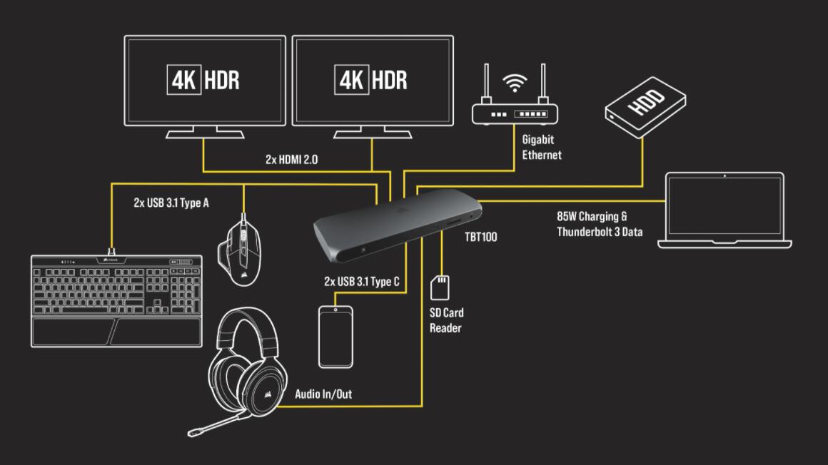 - Includes 2x HDMI ports for dual displays at up to 4K 60Hz in HDR, as well as a combination 3.5mm in/out jack for your audio.
