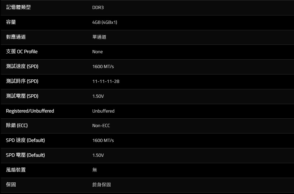 G.Skill Aegis DDR3 1600Mhz 4GB*1(F3-1600C11S-4GIS)