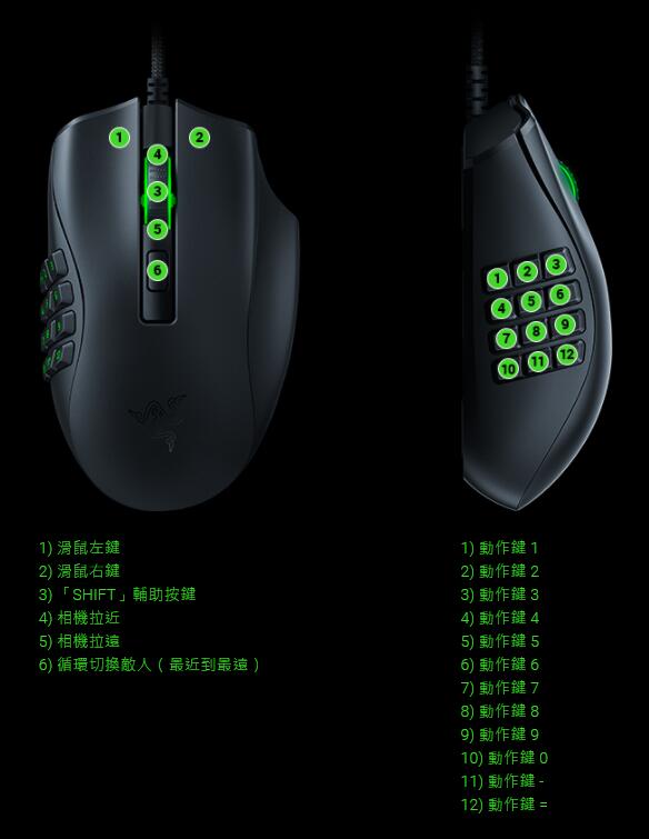 透過 Razer Synapse 3 配置最重要的快速鍵或巨集,讓你動動指尖即可發動更強大的攻擊,同時還可使用進階功能 — Razer™ Hypershift — 只要按一個按鍵,就能選擇使用次要按鍵設定檔,讓你加倍輸入的指令數量。