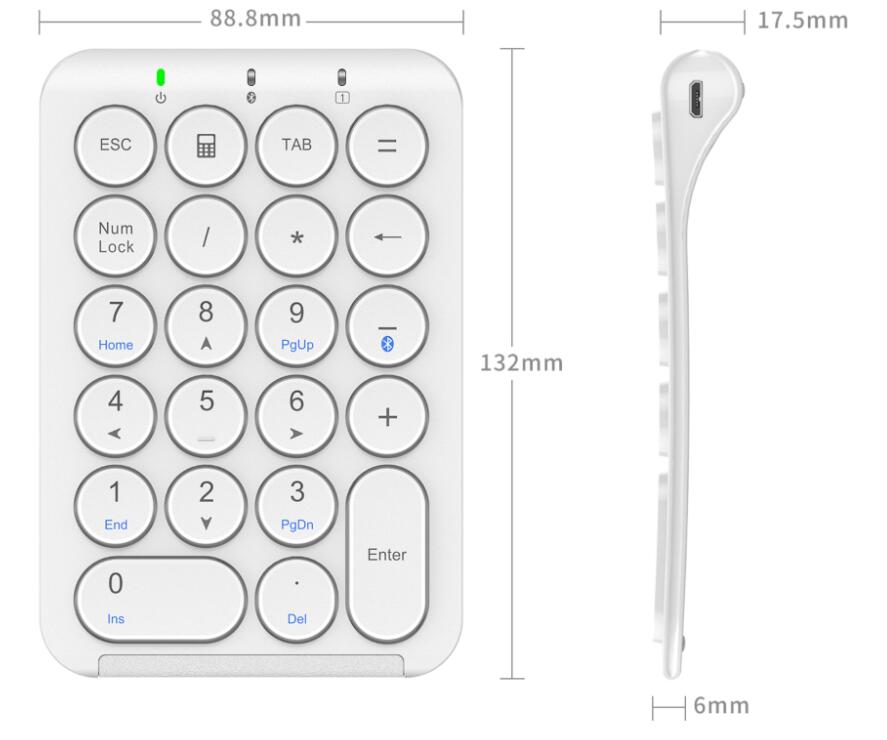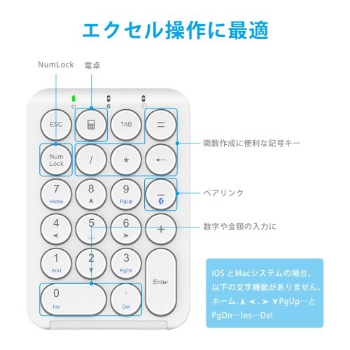 Bluetooth Tenkey具有便捷的功能鍵,例如 “Home”、”End”、”PgUp”、”PgDn”等功能鍵,可以輕鬆輸入數字並在Excel中工作。