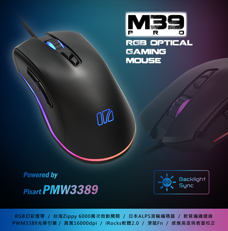- 採用先進Pixart PMW3389高階光學引擎,高達16,000 dpi真實解析度